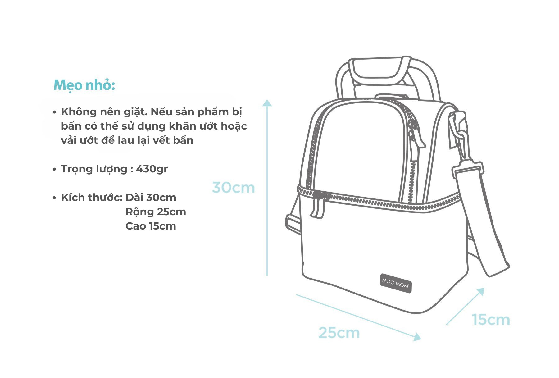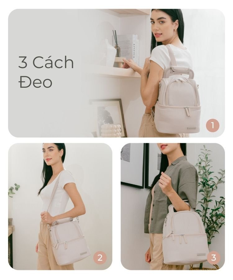 Sau khi được rã đông và làm ấm, sữa mẹ cần được trữ ấm để có thể sử dụng trong ngày. Với sức chứa lớn, và vật liệu giúp giữ nhiệt, chiếc túi này giúp mẹ mang theo một vài bình sữa ấm cho bé khi di chuyển. Có hai cách đeo chéo, balo, xách tay dễ dàng chuyễn đổi, thuận tiện cho bố mẹ.