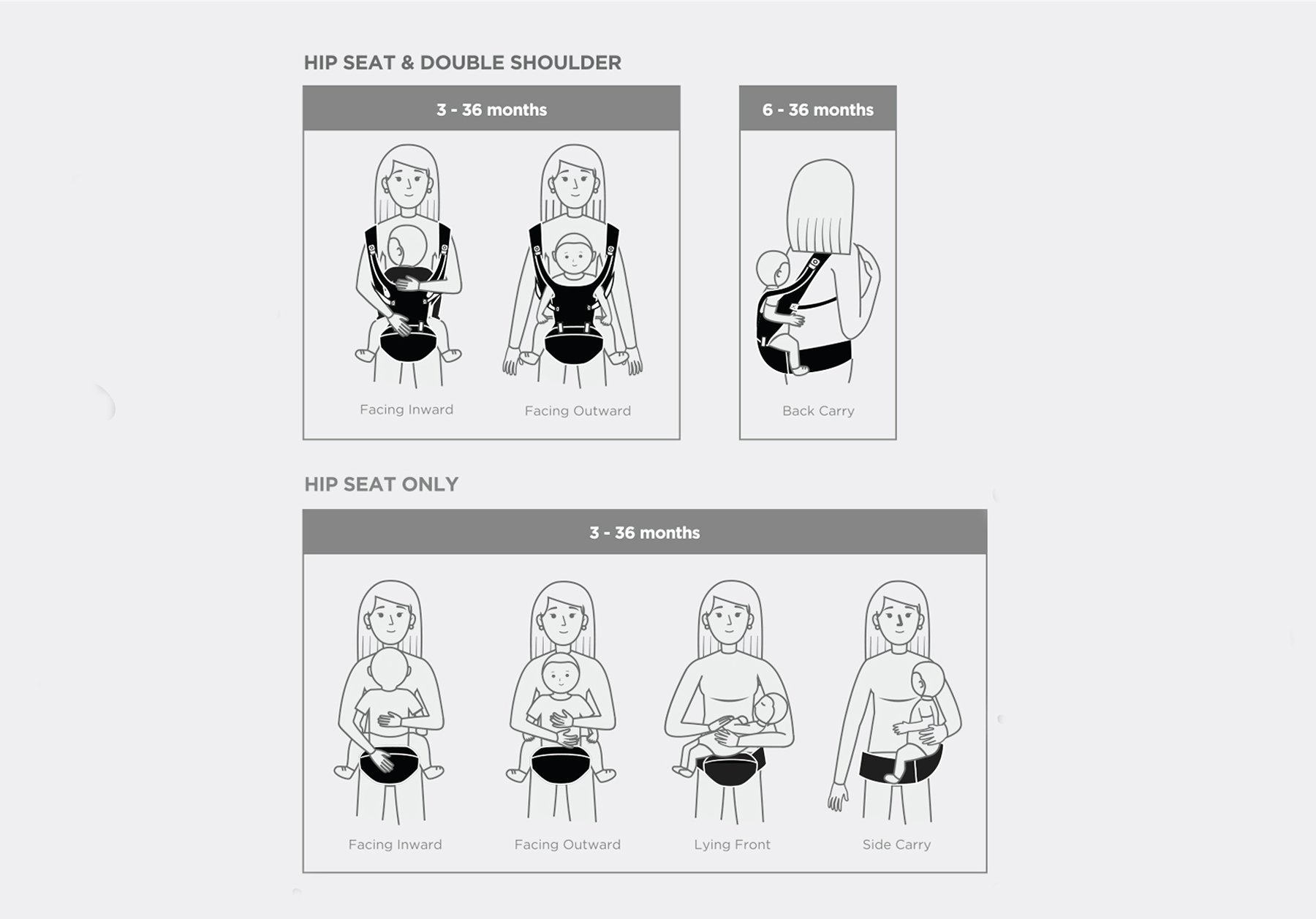 * Thiết kế chịu lực tốt, phân bổ sức nặng đều trên vai, hông, và bụng của người lớn