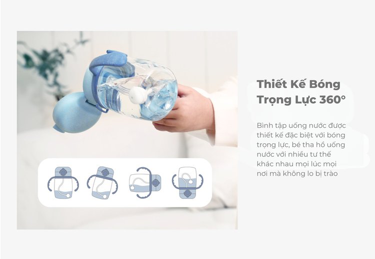 *Thiết kế ống hút bóng trọng lực cho phép bé uống từ bất kỳ vị trí nào.