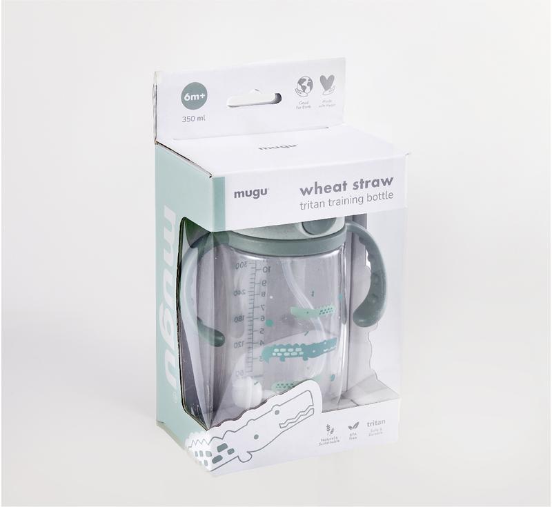 Được thiết kế tại Úc, bình tập uống nước ống hút lúa mì mugu được làm từ Tritan và sợi lúa mì tự nhiên. Chất liệu Tritan chất lượng cao bền hơn so với hầu hết các loại nhựa hoặc vật liệu thủy tinh khác. Ngoài ra, Tritan có độ trong suốt cao và không chứa BPA nên rất an toàn cho bé khi sử dụng.